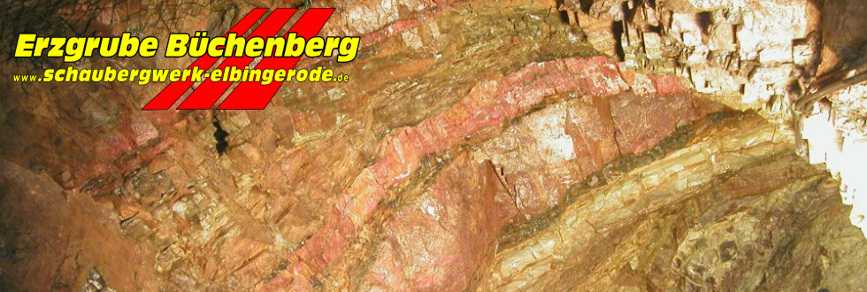Hier erhalten Sie anschaulich alle Informationen, die zum Betrieb eines untertägigen Bergwerks notwendig sind. Nun erwartet Sie ganz besonderer optischer Höhepunkt. Farbenprächtig zeigt sich, ein in Europa einmaliger, geologischer Aufschluss der auf geringsten Raum verschiedene Gesteinsarten erkennen lässt. Ein Anblick, der nicht nur den geologisch interessierten Besucher in seinen Bann zieht. Im Bergwerk erleben Sie weitere Bergbautechnik in voller Funktion. Überkopflader, Bohrhammer sowie Erzschrapper beeindrucken nicht nur in Größe und Schwere, sondern auch im Lärmpegel, den jeder Besucher hier persönlich mit erleben kann. All diese Maschinen sind originalgetreu aus dem Büchenberg. Gewaltig und im tiefen Rot öffnet sich der Berg und gibt den Blick auf seine Schätze frei. Mitten im Erz, auf dem Abbaufeld, kann man die mächtigen Erzlager bestaunen. Hier wird jedem der Gruß des Bergmanns und seine Anstrengungen beim Abbau des Erzes und den lauernden Gefahren im Erdinneren bewusst.